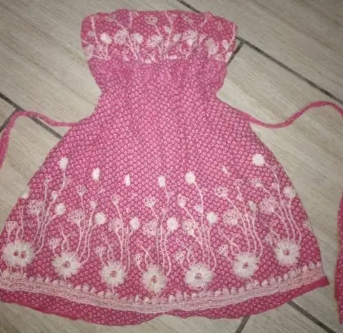 Vestido rosa bordado XS. Vestido rosa strapless, bordado, corto, talla XS o juvenil 10-12 años