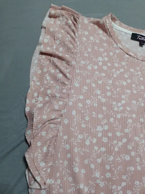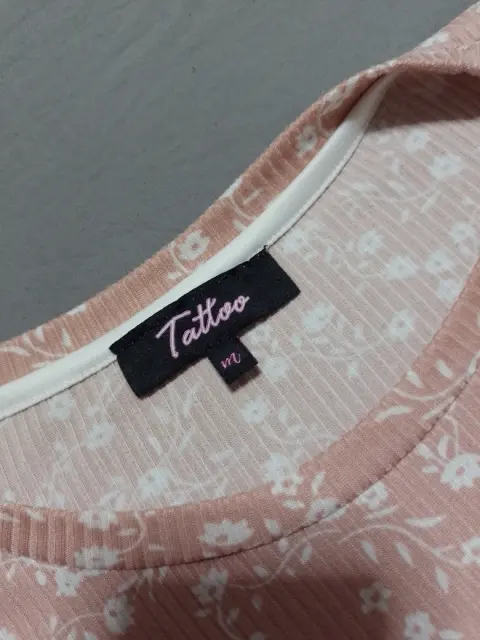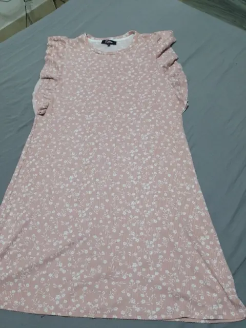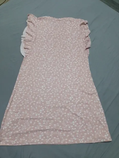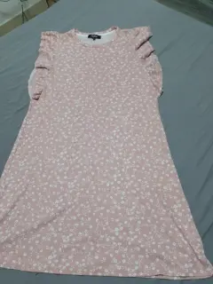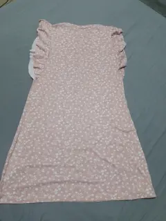 Vestido rosa con florecitas blancasEstiraEn perfecto estadoPlan en las mangasNo transparenta