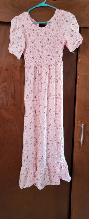Vestido rosa, casual, largo, estampado de flores y elástico en la parte superior. Perfectas condiciones