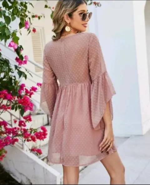 Vestido rosa de Shein. Precioso vestido casual en color rosa,bordado floral al frente, con manga volante de la marca Shein, Talla Grande, .Talla: largo 89 CM, largo manga 41.7 CM, pecho 106 CM, contorno cintura 96 cm, puño 33 CM❣️ PRECIO NO NEGOCIABLE,NO ACEPTO OFERTAS💵 COMPRA INMEDIATA🚫....... NO BLOQUEES si no estas segura de tu compra.