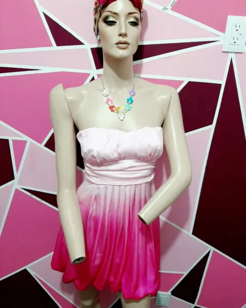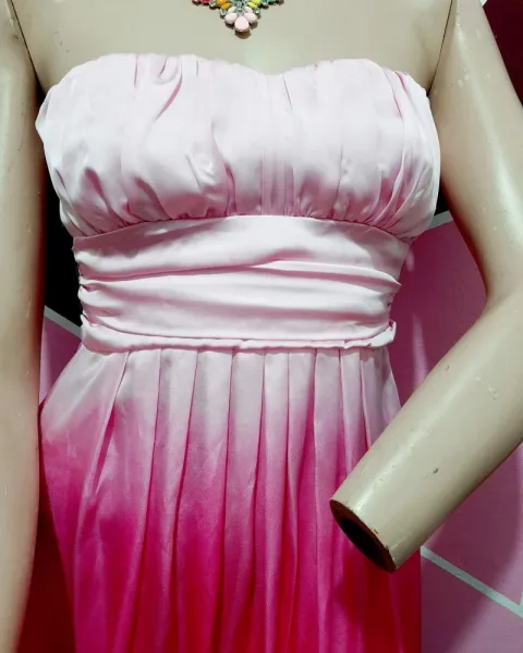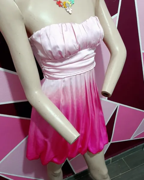 Hermoso vestido en tono rosa degradado a rosa muy clarito, talla xs, es hermoso, tiene al frente un pequeño hilito jalado que ni siquiera es visible en las fotos