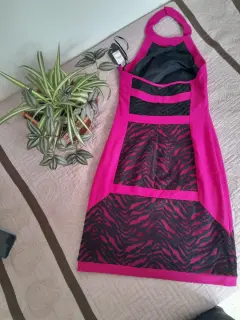 Vestido Rosa Fiusha. Vestido Halter marca Reina Díaz nuevo con etiqueta marca Reina Díaz.