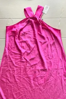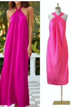 Vestido rosa largo es de meter no trae cierre o botones, la tela es suelta tipo satin no estira. Por el tipo de estilo viene de una talla G a Xg, podria venirle a una M haciendo ajustes en la mangaMedidas:Axila a axila: 63 cmLargo: 107 cm