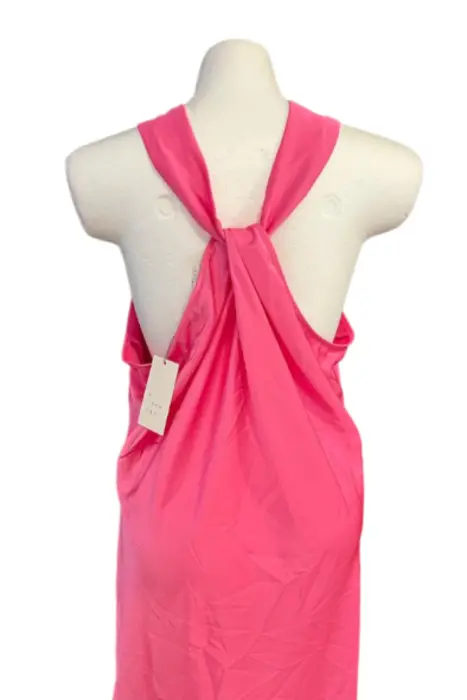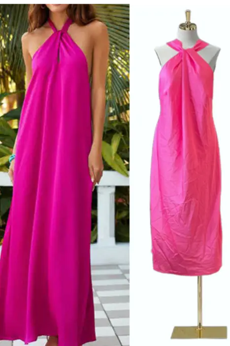 Vestido rosa largo. Vestido rosa largo es de meter no trae cierre o botones, la tela es suelta tipo satin no estira. Por el tipo de estilo viene de una talla G a Xg, podria venirle a una M haciendo ajustes en la mangaMedidas:Axila a axila: 63 cmLargo: 107 cm