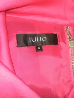 Vestido Rosa Marca Julio Talla 6. Vestido rosa, marca Julio talla 6. Con bolsillos discretos y cierre en la parte superior trasera. Es un vestido corto arriba de la rodilla. Ha Sido usado 1 sola vez, se encuentra en muy buen estado.