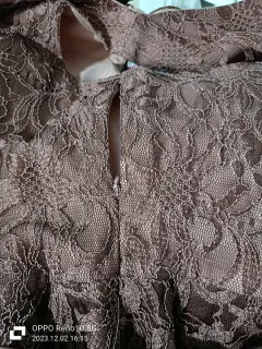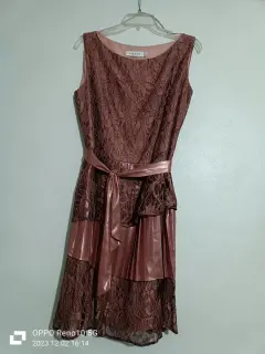 Lindo vestido tipo cocktail/fiesta en encaje y tela tipo satín. Con cierre para ajuste y cinta para la cintura (no tiene de un lado un hojal para la cinta).Talla 13/34