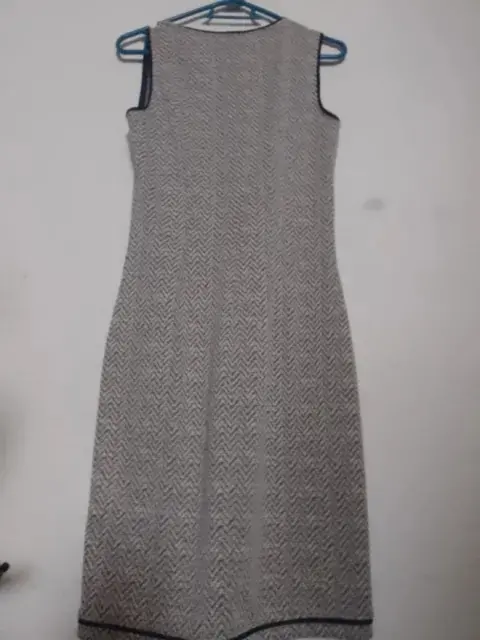 Vestido Sarah Bustani. Elegante vestido Sars Bustani, sin mangas, bies en combinacion negro en toda ls prenda, tela ajustable, ligera abertura en delantero que da un toque delicado.