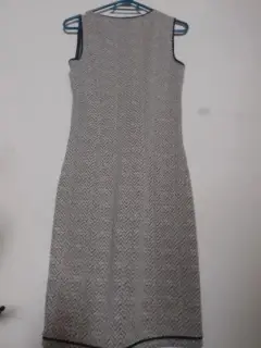 Elegante vestido Sars Bustani, sin mangas, bies en combinacion negro en toda ls prenda, tela ajustable, ligera abertura en delantero que da un toque delicado.