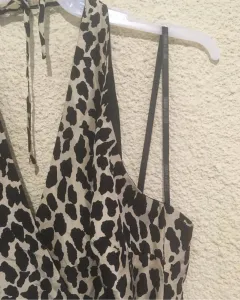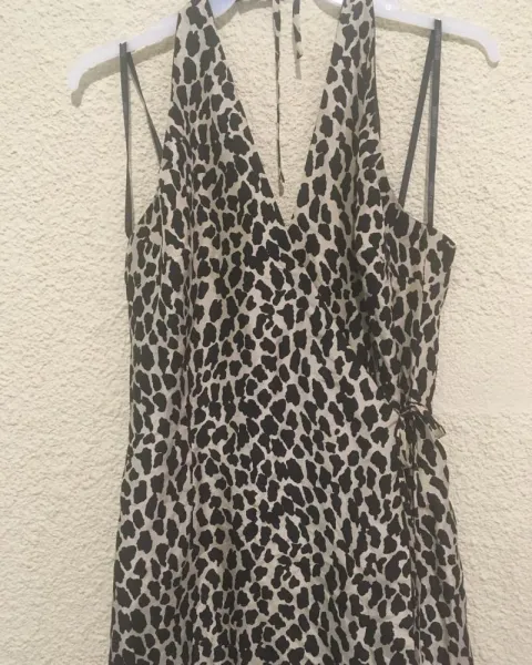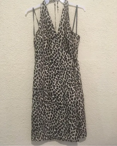 Hermoso vestido laundry con estampado de animal print tela suave y leve satinado con varillas a los lados talla Ch en excelente estado
