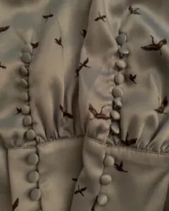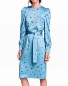 Vestido efecto satinado con mangas largas con botones y estampado de aves es talla 4/ small marca h&m solo lo use una vez no presenta detalles .