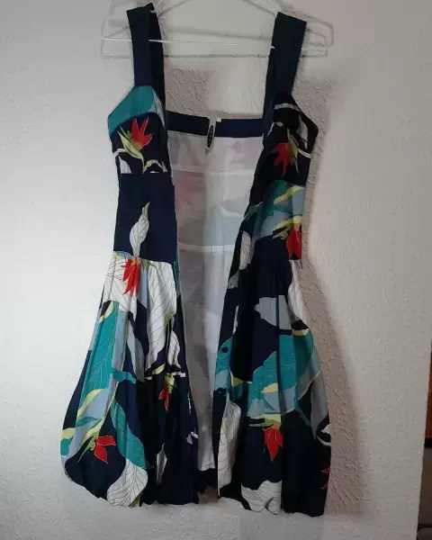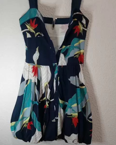 Vestido sencillo pero elegante. Vestido estampado corto bombacho sin mangas con tirantes y botones al frenteIdeal para playa, clima cálido o la ciudad de una manera casual
