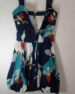 Vestido estampado corto bombacho sin mangas con tirantes y botones al frenteIdeal para playa, clima cálido o la ciudad de una manera casual