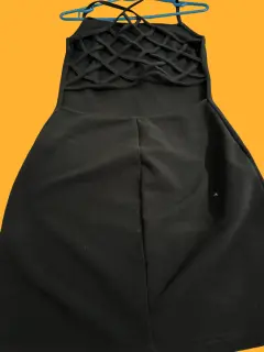 Vestido sexy. Bello vestido con espalda con entrelazado transparente, corto, ideal para una salida casual en la noche