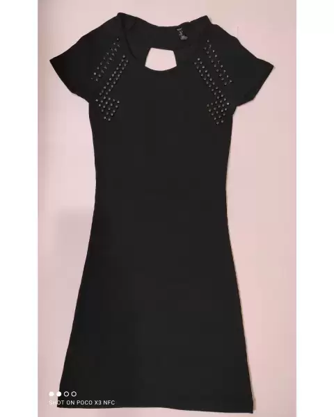 💋 Vestido SEXY JEANS negro ❣️. ❤️ Vestido negro de estoperoles en la parte superior, escote en espalda, es tela tipo lickra.Sexy y belloNOTA: Es talla mediana pero está reducido, queda mejor a talla extra chica y chica.MedidasHombro 28 cm estira a talla chicaAxila 31 cm estira a talla chicaCintura 26 cm estira a talla chicaCadera 28 cm estira q talla chicaLargo 76 cm
