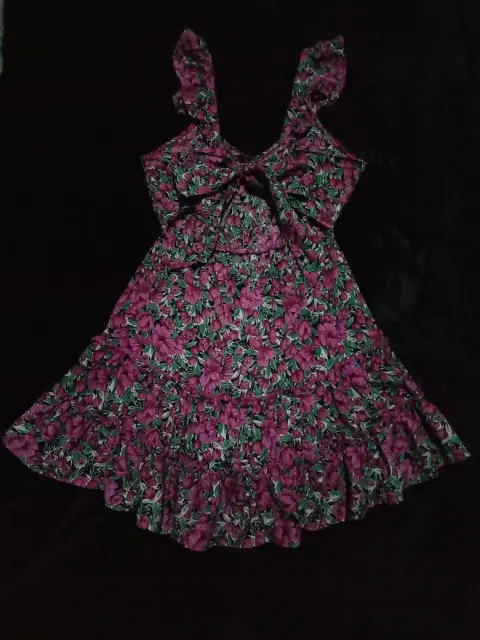 Vestido talla M de marca shein, estampado flores color lila/morato. Se ajusta por la espalda con un moño.