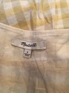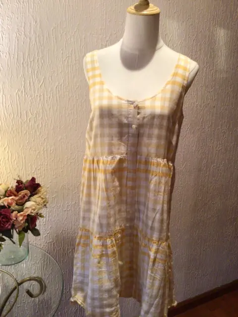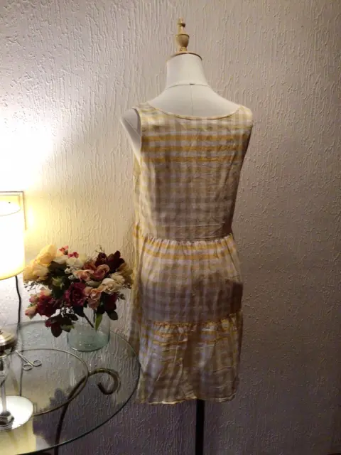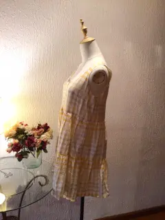 VESTIDO SIN MAGAS TALLA S. VESTIDO MARCA MADEWELL TALLA S, SIN MANGAS CON OLANES, CON CUADROS COLORES AMARILLO CON BEIGE, MUY FRESCO, SIN DETALLES, SIN ETIQUETA, TOTALMENTE NUEVO