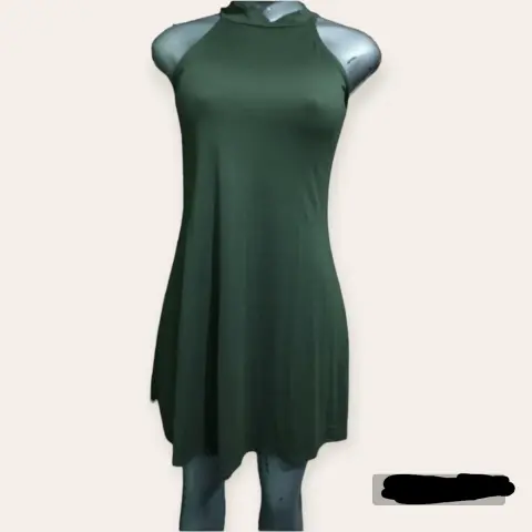 Vestido asimétrico,sin mangas ,olgado de color verde militar,talla L, marca LVL,nuevo sin etiqueta.