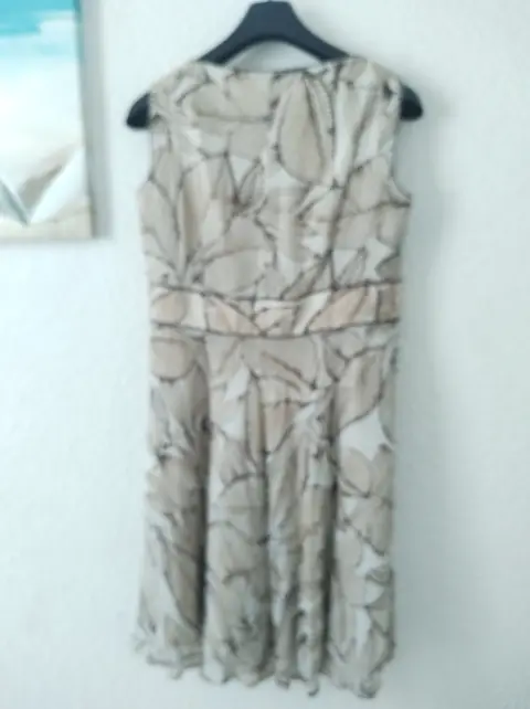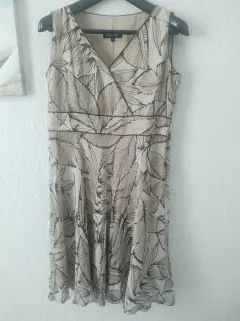 Vestido sin mangas tonos café Julio. Vestido sin mangas con falda amplia en tonos cafes y cuello en V marca Julio talla 10. Se ve muy elegante y casual, queda perfecto para una fiesta de día y con un saco es una buena opción para usar en la oficina.