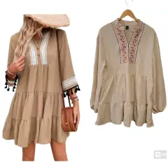 Vestido Smock con Bordado. Vestido Smock con Bordado, manga larga, el bordado en tonos terracota, tela fresca pero no transparenta. Medidas de axila a axila 50cm Largo 80cm, es S, pero como queda muy holgado también puede quedar a M