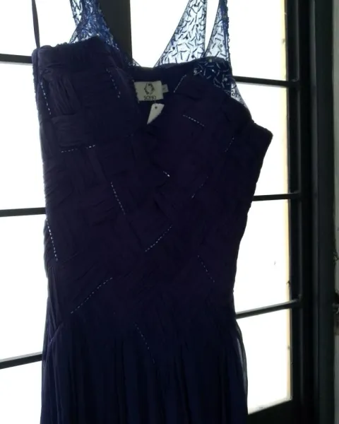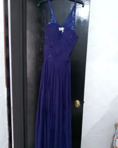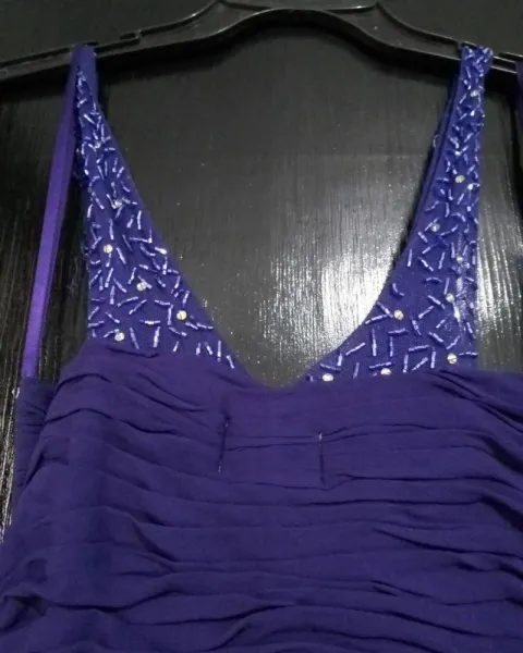 Vestido Soho de noche. Vestido Soho vaporoso con hermosa pedrería y escote sexy.