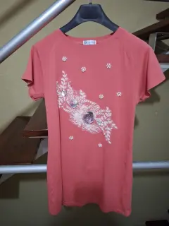 Vestido sport con aplicaciones de perlas,flores ideal para estar cómoda pero arreglada muy cómoda. Composición 95% algodón 5% elastanoUnitalla queda perfecto de la talla 4 a la 8