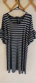 Vestido Sport, ideal con tennis. Vestido a rayas negro/gris jaspe,marca Lane Bryant, Talla 18/20, 95% rayón, 5 % spandex, cuello redondo, manga doble escarola.