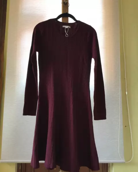 Vestido Springfield. SPRINGFIELD. VESTIDO GUINDA ACANALADO