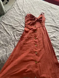 Vestido Stradivarius. Lindo vestido largo stradivarius talla S . Con detalle de abertura en el escote con un moño. Llega al tobillo