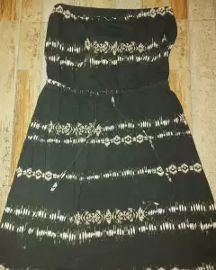Vestido straple con resorte en lanparte de arriba para que o se baje, tipo tribal con jareta en cintura