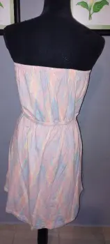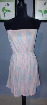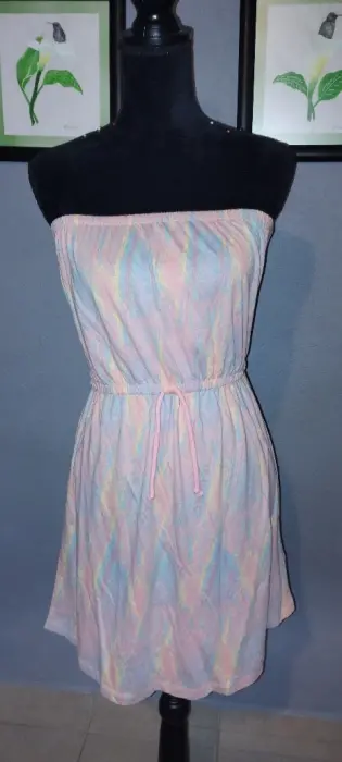 Bonito vestido straple multicolor.Talla MMuy ligeroCon bonito detalle de resorte en la cintura y jareta.