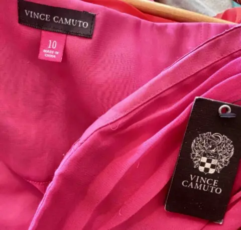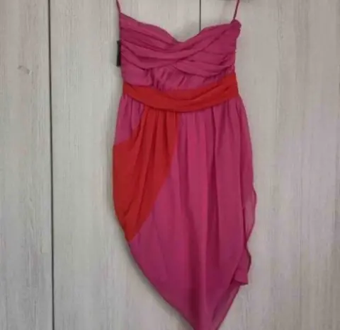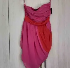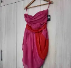 Vestido Straple Vince Camuto. Vestido de fiesta, straple con tirantes, drapeado, cierre lateral, color fiusha y rojo.Talla entre M y L el busto da a una 36 B.