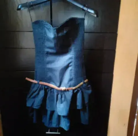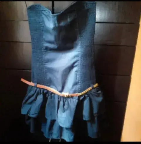 Vestido strapless. Vestido strapless corto negro con olanes con cremallera en la espalda y plisado que ajusta , contiene cinturon y este puede quitarse