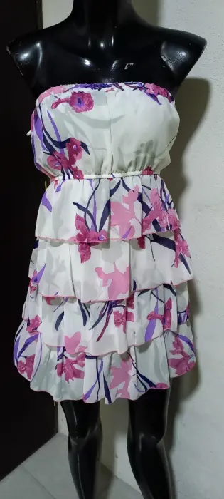 Vestido strapless con olanes fresco talla s. Gracias por tu visita ..En esta ocasión te traemos:..................................................................................TALLA sMARCA metropolisCOLOR floralSTRECH siTELA gasaMADE IN ?MEDIDAS HOMBRO AXILA 35 cm Estira masCINTURA 33 cm Estira masCADERA 48 cm Estira masLARGO 64 cm Desde la Axila Las medidas son de lado a lado de la prenda