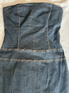 vestido strapless mezclilla. talla: medianamedidas: busto (medida lineal) 34 cm, cintura 68 cm, largo 69 cm