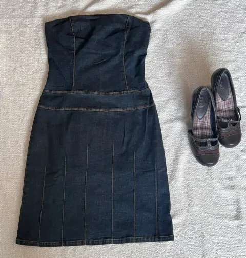 vestido strapless mezclilla