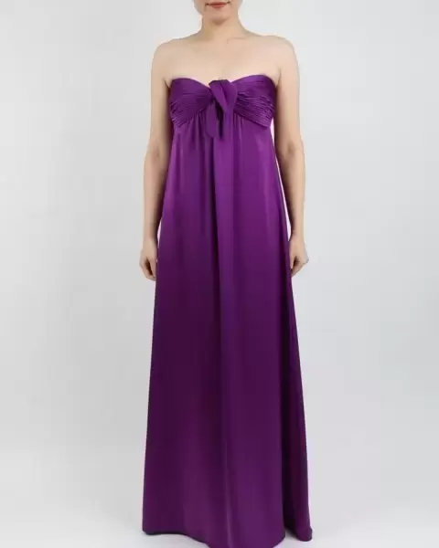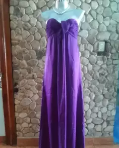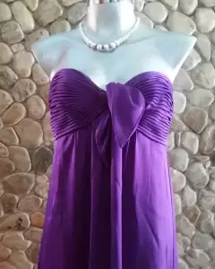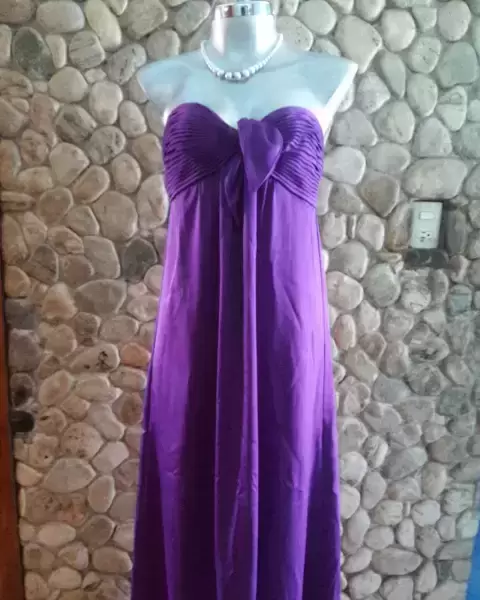 Vestido strapless morado. Vestido largo strapless con nudo frontal ideal para un evento especial o fiesta.En la ultima foto solo es una sugerencia de como combinarlo con accesorios.El vestido es nuevo sin etiqueta, talla: 4 - chico y material: 100% poliester.