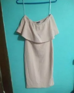 Bonito vestido strapless entallado color rosa clarito tela poliéster y spandex es talla M medidas pecho 74-104cm cintura 68cm cadera 82 y largo 87 estira bastante yo mido 84 de pecho y no lo sentia tan firme quiza para tallas mas grande quede perfecto