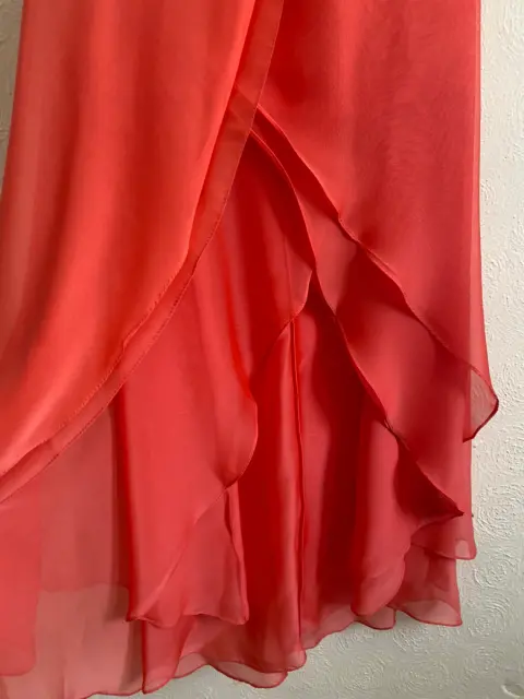 Talla 5 (chica), color salmón, corto de enfrente, largo de atrás, con cierre en la espalda.