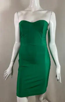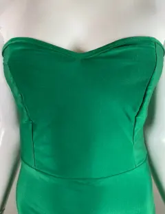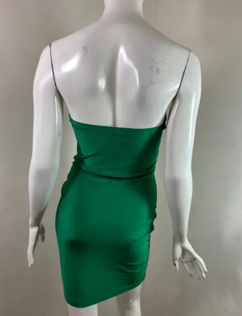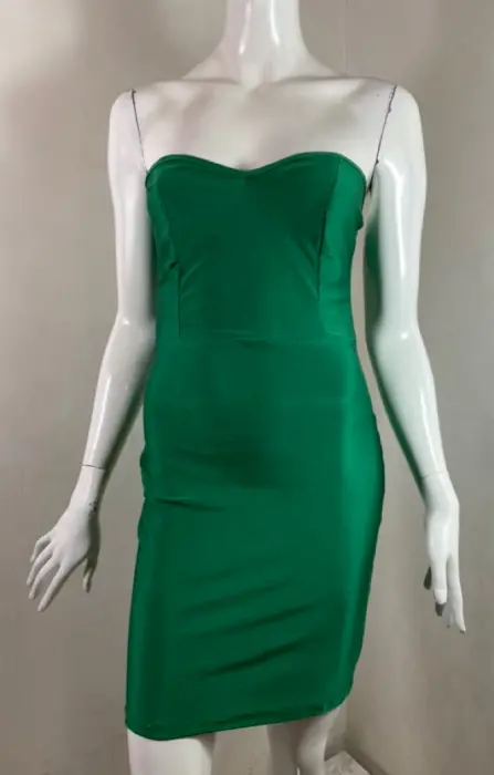 Vestido strapless verde. Vestido en licra satinada muy elástico recto y corto talla única, abarca chica y mediana