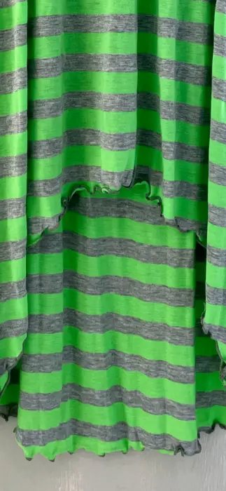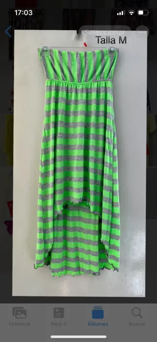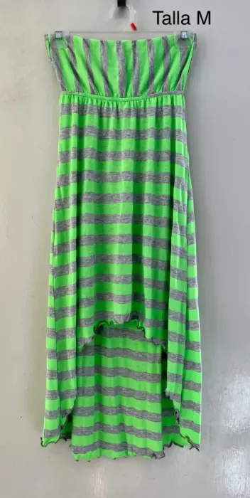 Vestido strapple de verano verde rallado con gris, asimétrico talla M