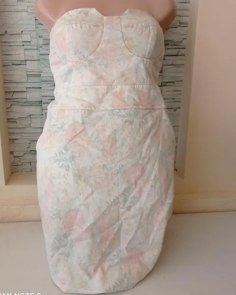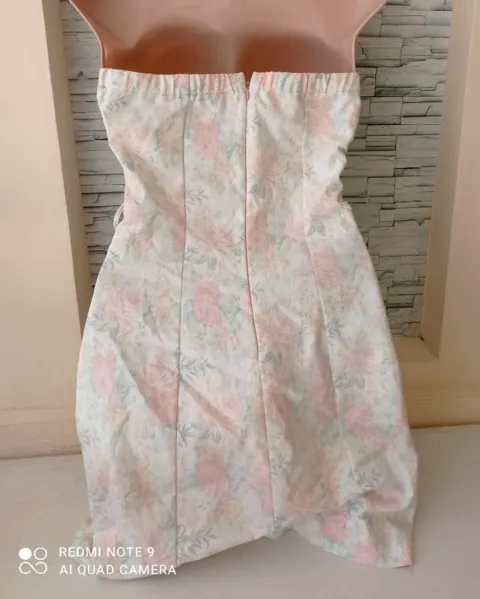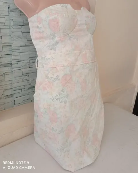 Vestido strapple floreado tenue color pastel. Vestido estrapple floreado tenue color pastel bolsillos a los lados y pretina para cinturon delgado, largo hasta la rodilla