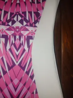 Talla chica. Tela stretch que se ajusta al cuerpo. Estampado que realza la figura.