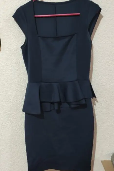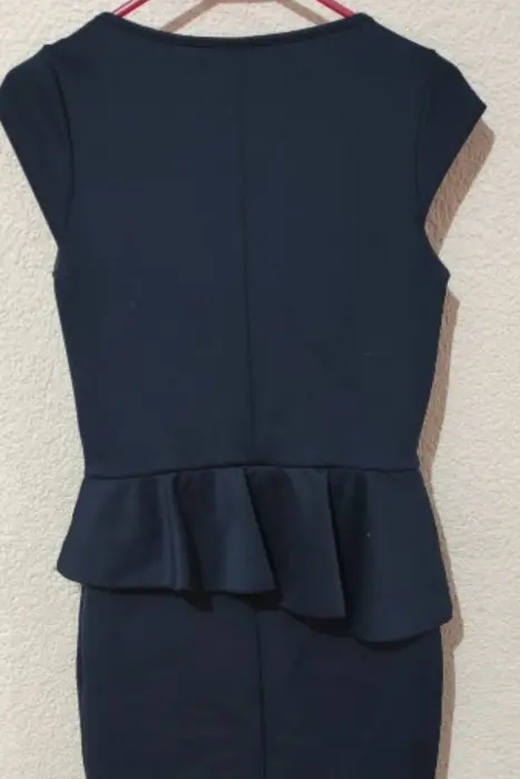 Luce fresca y siéntete bella con este vestido excelente para un viernes casual con la familia o amigos, en un click!!Talla: MMedidas: Largo 92.5, Axila 40, Cadera: 35cmColor: Azul MarinoDetalles: vestido streach, detalle de olanes en la cadera, sin mangas, sierre al lado