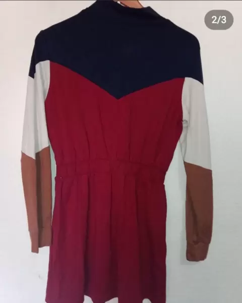 Vestido sudadera. Vestido tipo sudadera con cierre, manga y cuello alto.Ajustado a la cintura