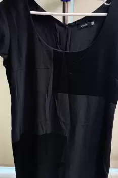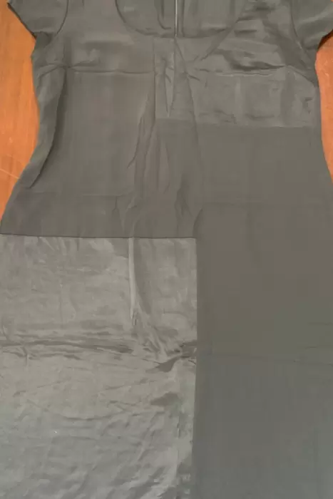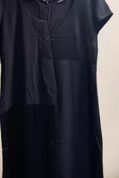 Vestido suelto de manga corta, apertura en la espalda, fabricado en Brasil. Tela de poliéster de alta calidad positivo/negativo formando cuadros matte y brilloso.