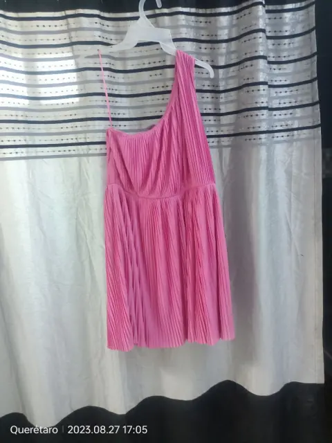 Hermoso Vestido Tableado color Fiusha sin manga, muy como y elegante
