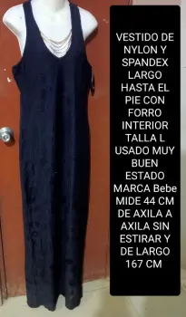 VESTIDO DE NYLON Y SPANDEX TALLA L MUY BUEN ESTADO CON FORRO INTERIOR MIDE 44 CM DE AXILA A AXILA Y DE LARGO 167 CM