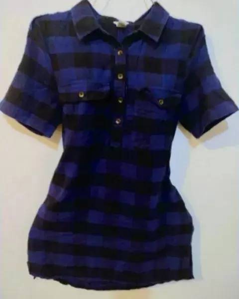 Vestido de manga corta juvenil en talla L de manga corta azul con negro sus medidas de hombro a hombro 40cm, axila a axila 52cm, cintura 51cm, largo total 88cm..
