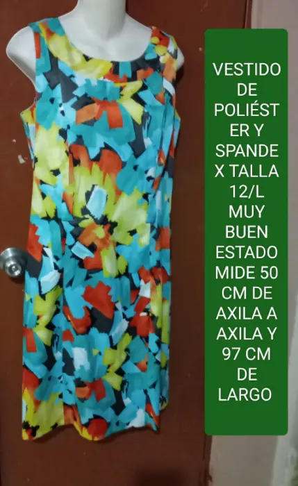 VESTIDO TALLA L/12. VESTIDO DE POLIÉSTER Y SPANDEX TALLA L/12 PRÁCTICAMENTE NUEVO MIDE 50 CM DE AXILA A AXILA Y 97 CM DE LARGO