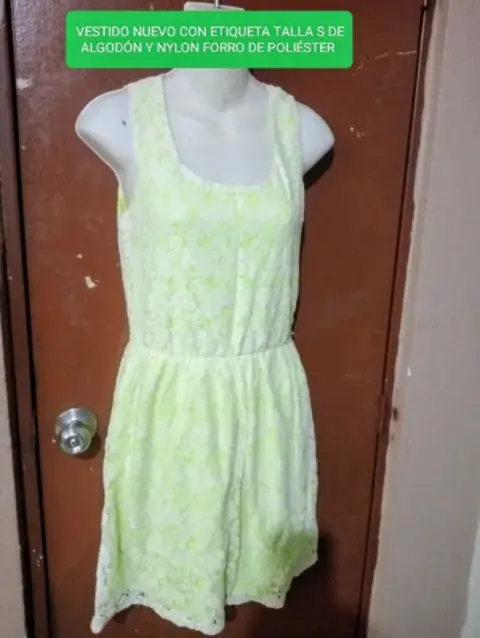 VESTIDO TALLA S DE ALGODÓN Y NYLON FORRO INTERIOR DE POLIÉSTER MIDE 40 CM DE AXILA A AXILA NUEVO CON ETIQUETA